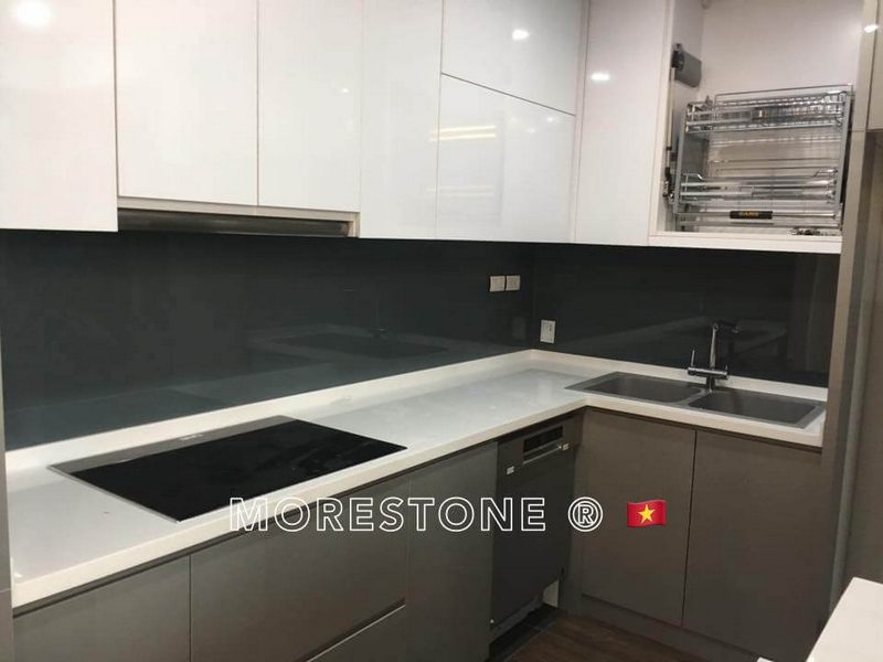 Người thợ MoreStone đã hoàn thành công trình thi công đá ốp bếp Casla tại chung cư cao cấp.