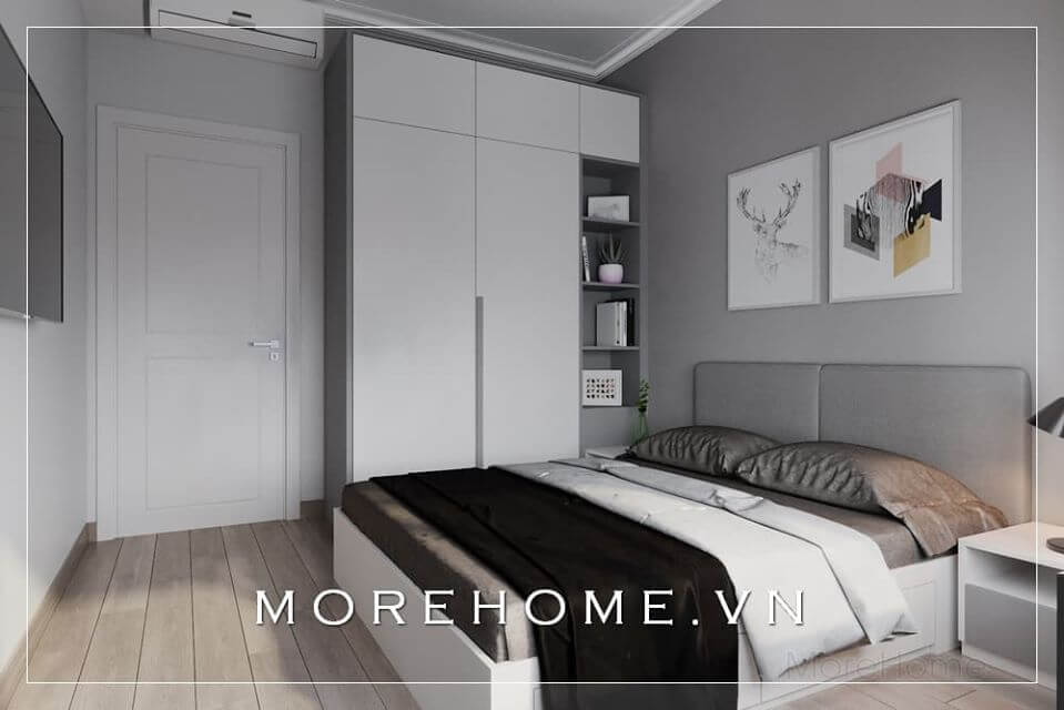 Tủ quần áo màu trắng được lựa chọn mang lại cảm giác tinh tế và liền mạch, thoáng đãng hơn cho không gian phòng ngủ nhỏ