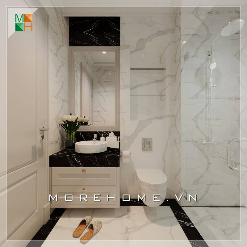 Thiết kế nội thất nhà tắm biệt thự, chung cư, nhà phố sang trọng hơn với gạch ốp tường và gạch lát sàn giả vân đá cao cấp.