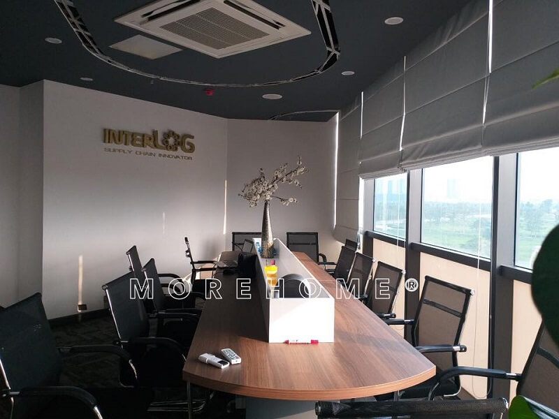 Bộ bàn ghế văn phòng được đặt vị trí chính giữa giúp không gian phòng họp trở nên đẹp và ân tượng hơn.