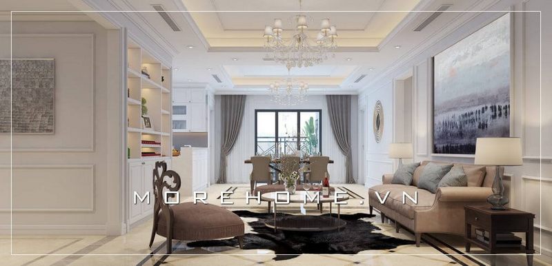 Kệ trang trí phòng khách gỗ màu trắng hiện đại cho không gian phòng khách tiện nghi