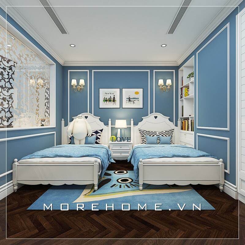Kệ sách được thiết kế âm tường giúp không gian phòng ngủ của con rộng thoáng hơn mang đến sự khác biệt và ấm cúng hơn.
